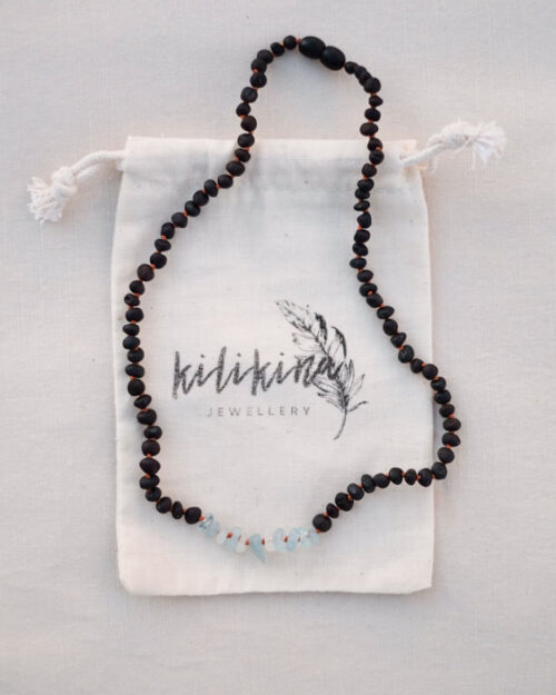 Raw Black Amber + Aquamarine Chips