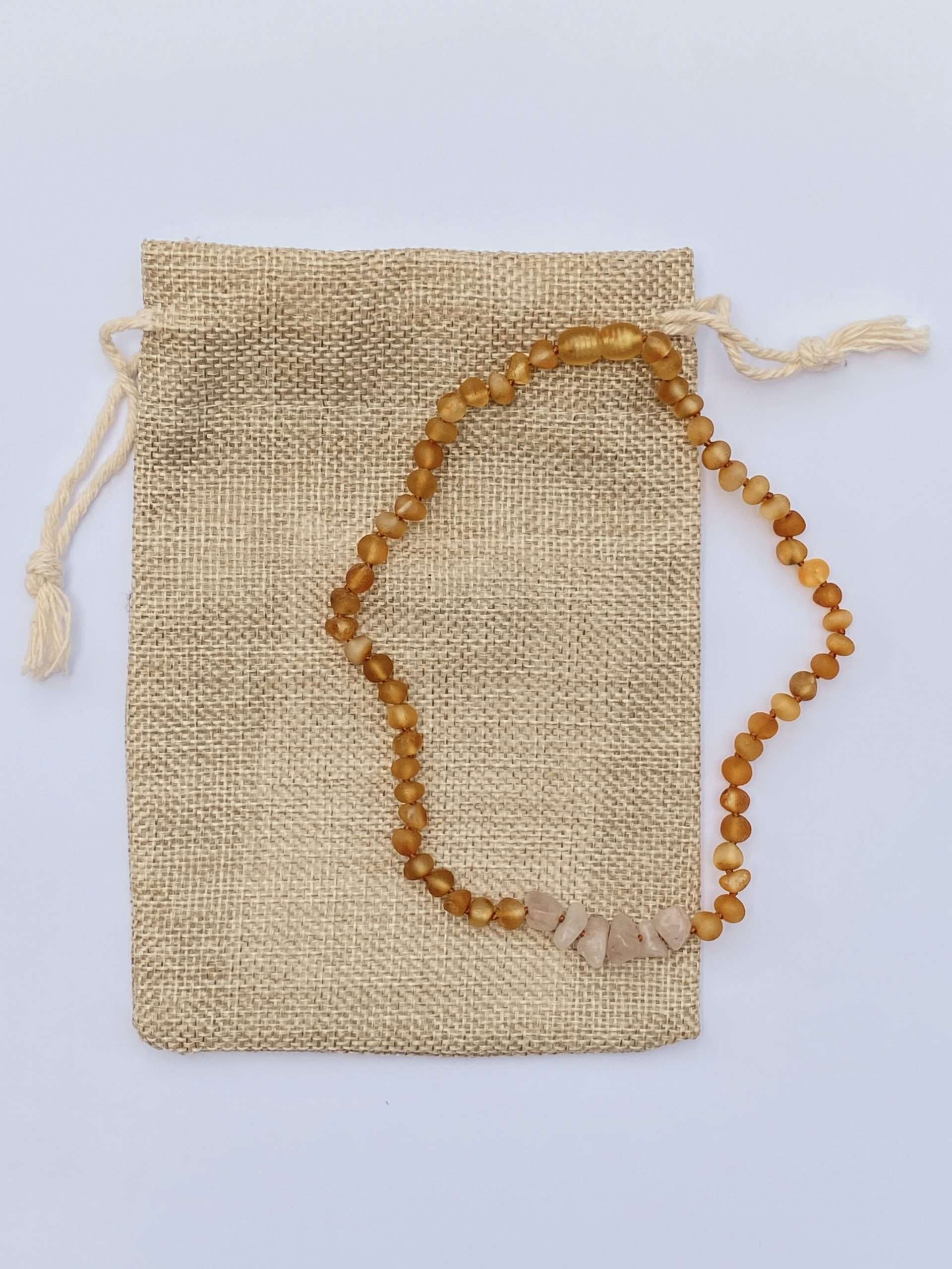 Amber is as old as time itself, and still today used for its magnificent healing properties for treating joint pain, arthritic ailments, and teething pain for children. Baltic amber has been a natural and traditional remedy for teething discomfort for hundreds of years. Our amber jewellery comes in a variety of earthy colours and warm tones, paired exquisitely with your choice of natural gemstones, creating a unique and personal piece of jewellery that carries the amazing added health benefits!